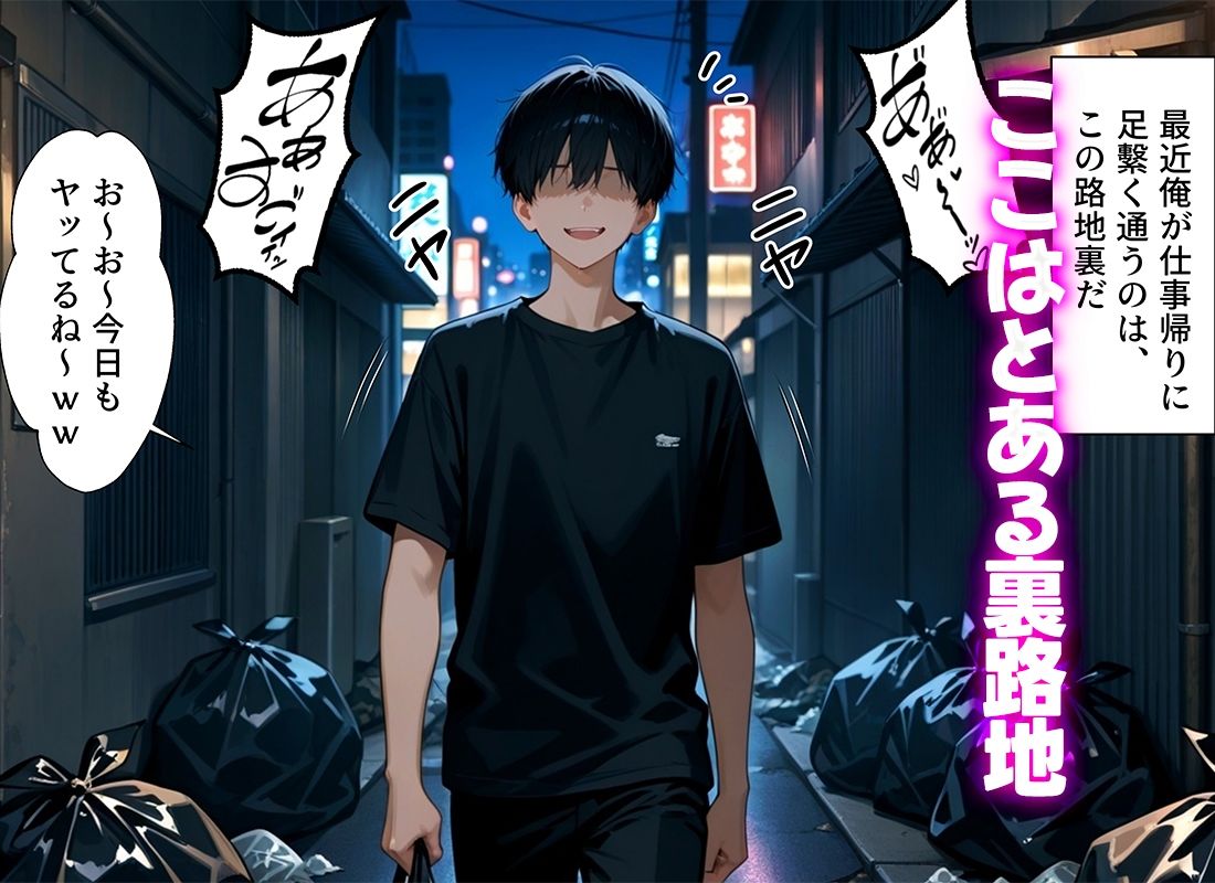 路地裏に入ると、ゴミ袋の横から聞こえてくる生々しい喘ぎ声。