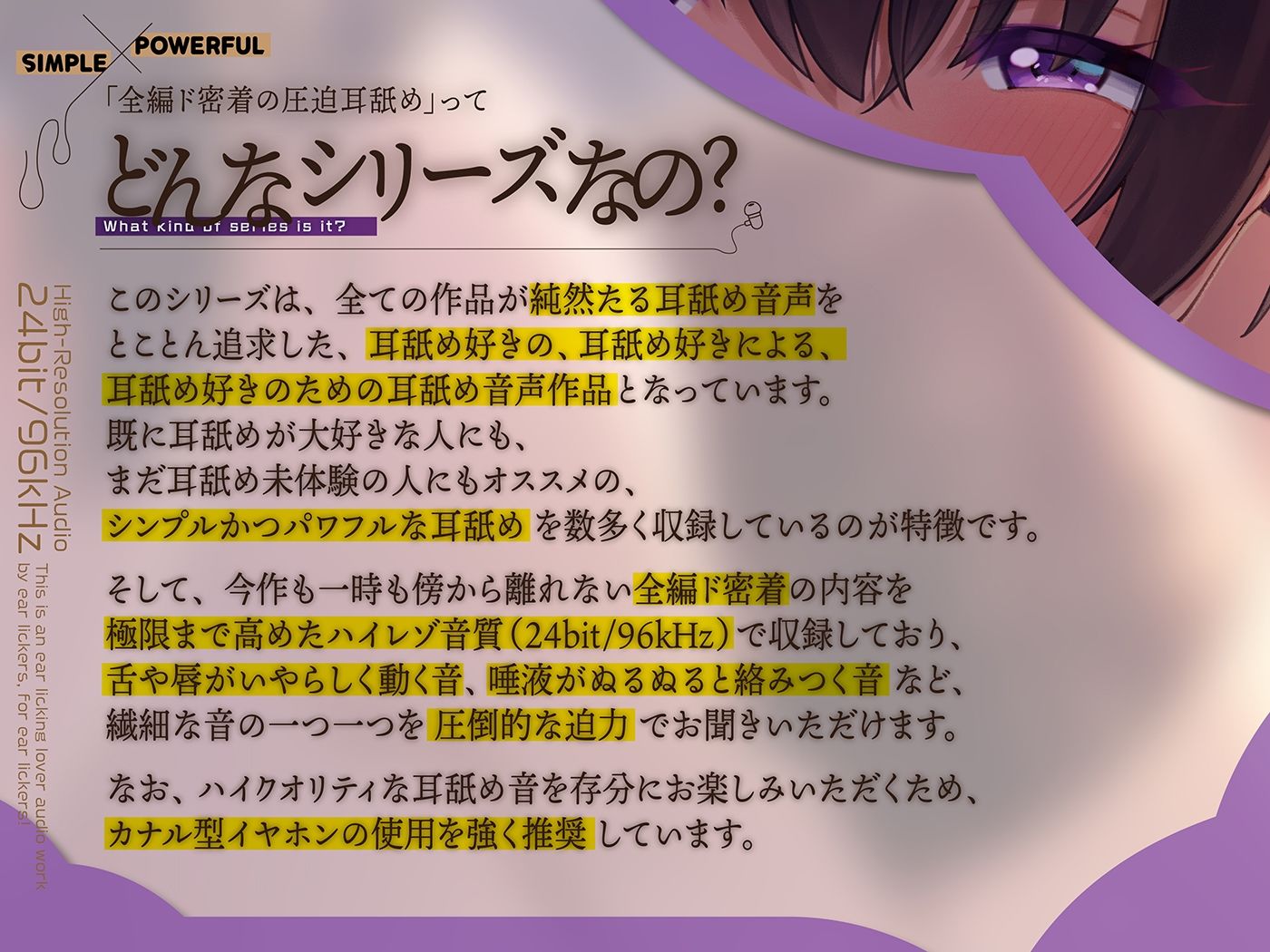 このシリーズは、全ての作品が純然たる耳舐め音声をとことん追求した、
