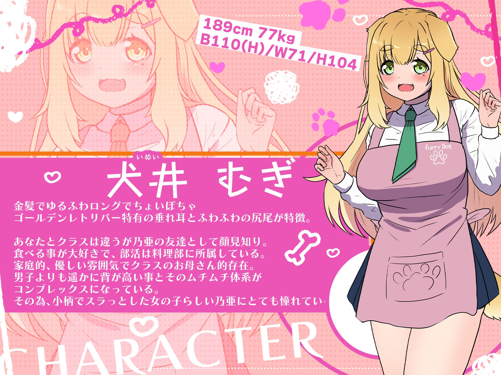男子よりも遥かに背が高い事とそのムチムチ体系がコンプレックスになっている。