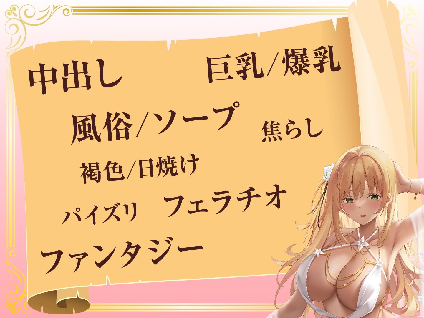 ジャンル: ファンタジー、巨乳、中出し、フェラ、パイズリ、風俗・ソープ、褐色・日焼け、焦らし、男性向け、成人向け